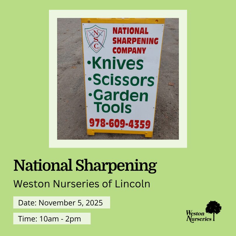National Sharpening will be at our Lincoln location on the first Wednesday of each month during the 2025 growing season from 10am to 2pm. Bring your dull knives, scissors, lawnmower blades, shears and other cutting devices and have them expertly sharpened while you shop! How it works: Drop off your items at Weston Nurseries of […] |