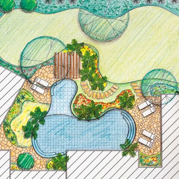 A designer creates a complete scale drawing of your planting project showing the specific placement of plants and features.